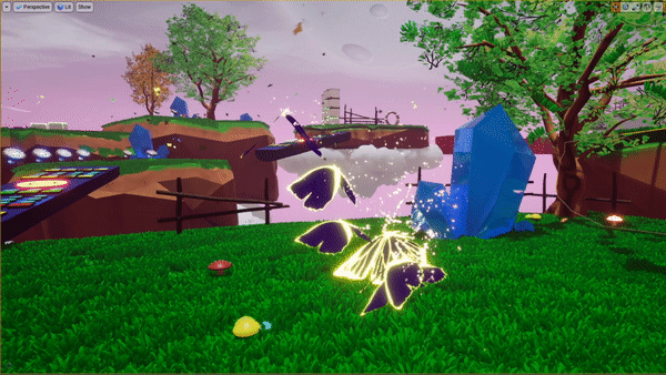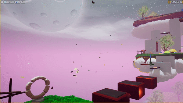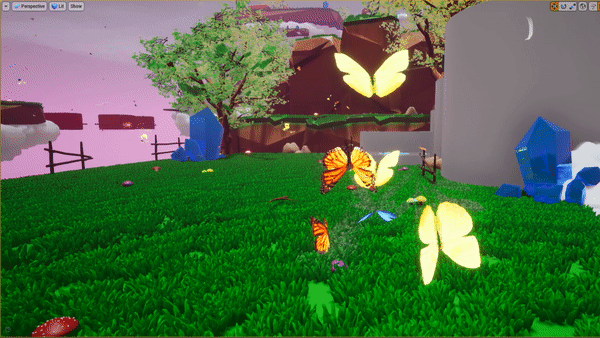 Except for the butterflies that are a package from the UE store, all the other particles were made by us.
